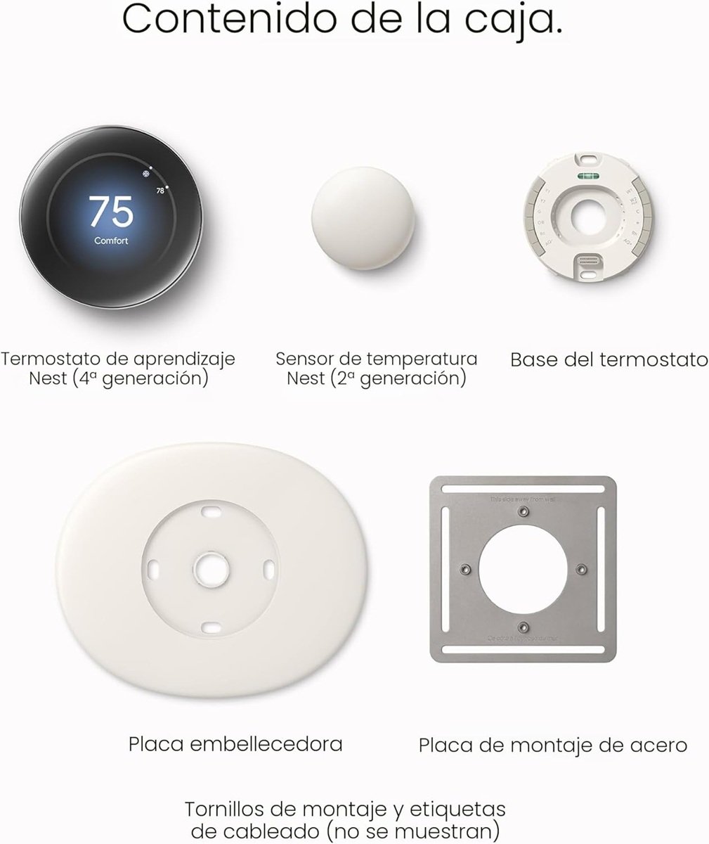 Si te da miedo el tema de los cables, respira tranquilo. Google se ha pasado el juego de la instalación por cuenta propia por ti. La caja del Nest Learning 4° Gen viene cargada con todo lo que necesitas, y las pantallas animadas del propio termostato te guían como si tuvieras a un técnico de Google sentado a tu lado.